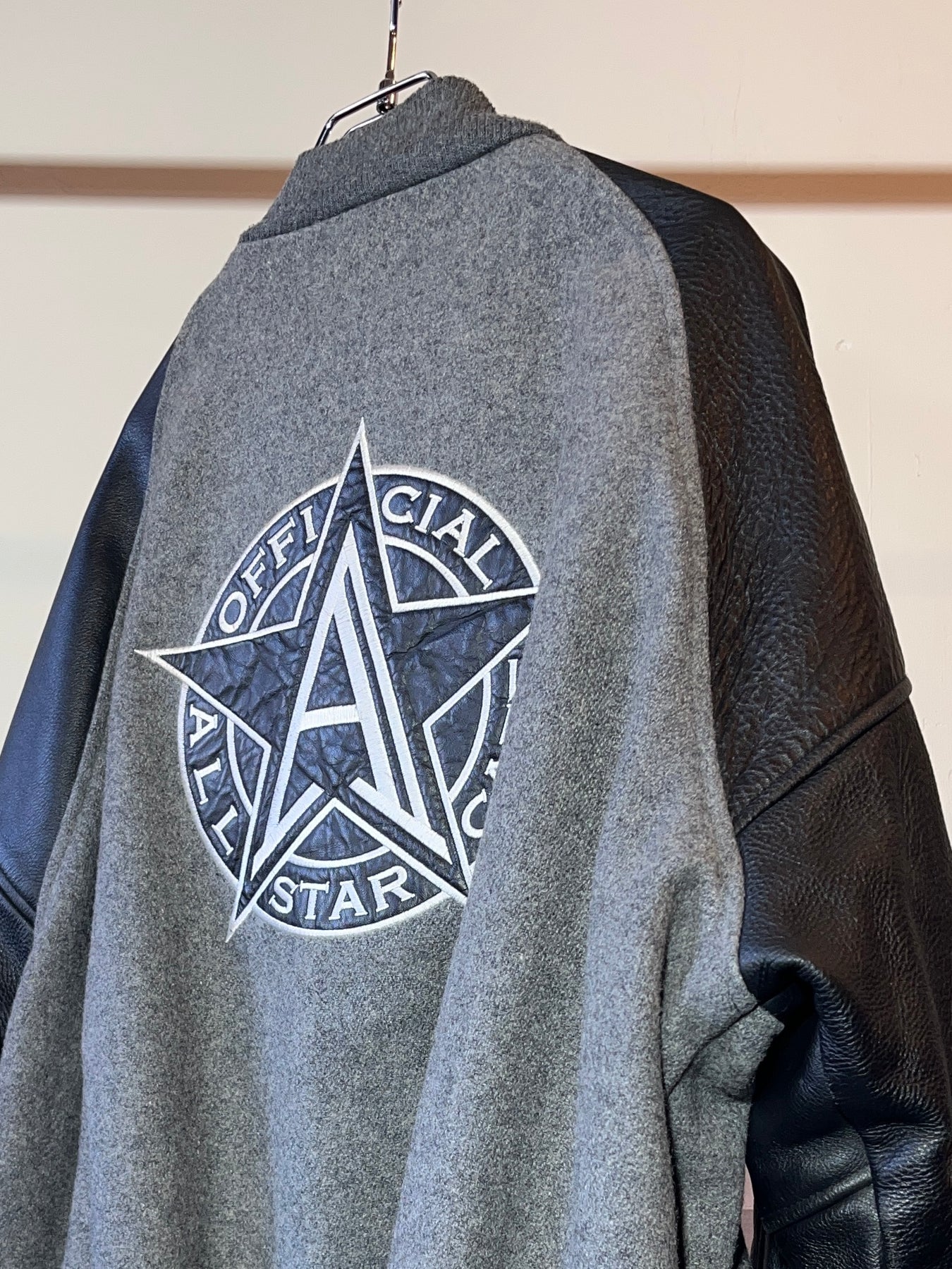 1990s USA made "ALL STAR CAFE" official leather × melton varsity jacket