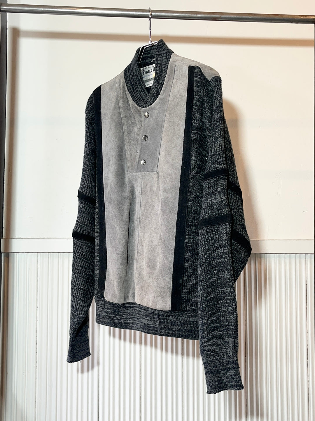 1980s "PIONEER WEAR" suede leather x knit panel jacket